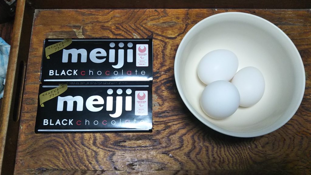 3個作る予定なので板チョコ1.5枚と卵3個です。